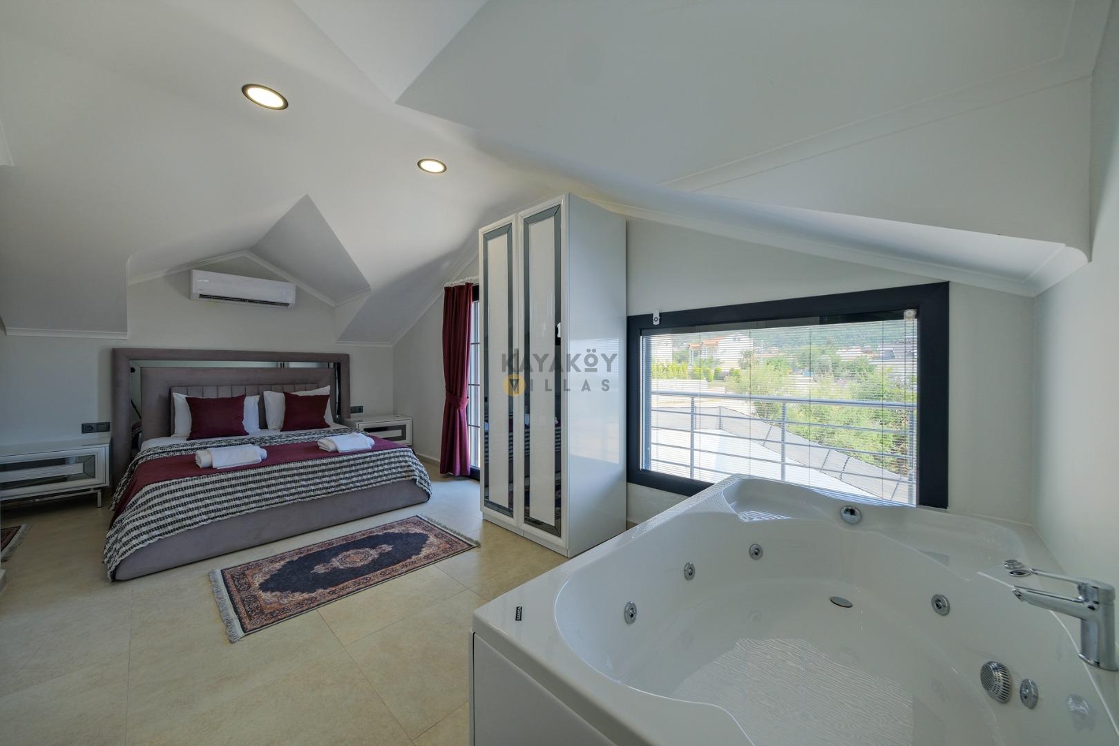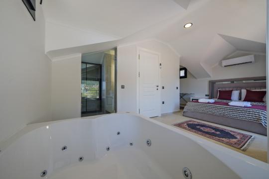1. Yatak Odası : 1 adet Çift kişilik yatak, Elbise Dolabı,Komodin,, Klima, Jakuzi, banyo/WC