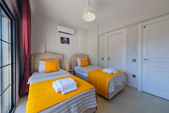 2. Yatak Odası : 2 adet Tek kişilik yatak, Elbise Dolabı,Komodin, Klima, Ortak banyo/WC
