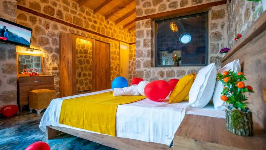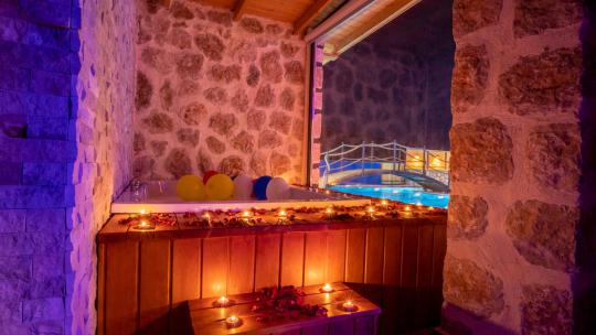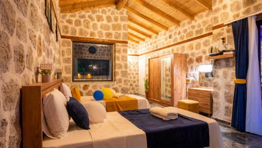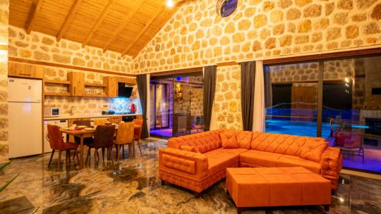 Kalkan İslamlar mevkiisinde bulunan villamız 2 yatak odalı 4 kişi kapasitelidir. Korunaklı havuz alanı sayesinde muhafazakar misafirlerin de tercihleri arasında yer almaktadır.