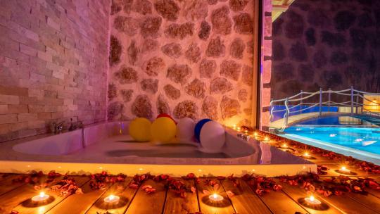 Yeşillikler içinde özel muhafazakar havuzlu, masa tenisi, şömine, langırt, çocuklar için düşünülmüş oyun parkı, salıncak, mini futbol kalesi, küçük basket potası, oturma köşkü, tranbolin, masa tenisi, langırt, minyatür kale, havuzda voleybol filesi, bbq, tavla, satranç, domino, sauna ve oda içerisinde jakuzi bulunan villamız bölgenin en modern villalarından olup muhafazakar balayı çiftine fiyata uygun, lüks bir Kiralık Balayı Villasıdır. Villamız geniş bir bahçe içerisinde yapılmış olup etrafında herhangi bir yerleşim olmadığı için tam korunaklı bir havuza sahiptir.