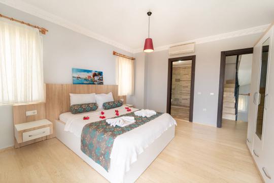 Villa Girit 2, Kalkan’da dört tane benzer mimarideki yanyana konumlanmış özel villanın yer aldığı bir site içerisinde bulunmaktadır. Bu muhteşem tatil villamızın 4 tane yatak odası bulunmaktadır ve hepsinden sizi muhteşem bir deniz manzarası beklemektedir. Tüm yatak odalarında klima bulunan villamızın iki tane yatak odasında ebeveyn banyosu vardır. Bu banyolar dahil toplamda 4 adet banyosu bulunmaktadır. Bir banyosunda jakuzi de mevcuttur.