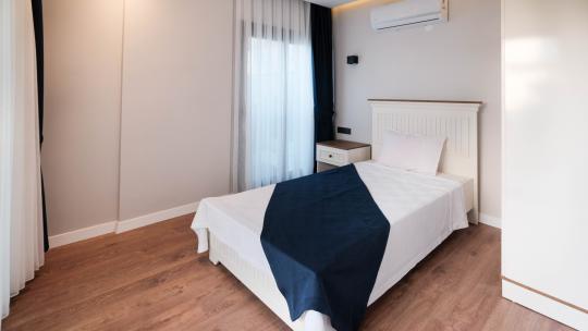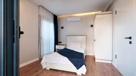 4. Yatak Odası : 1 adet tek kişilik yatak, makyaj masası, klima, elbise dolabı, komodin, Banyo&WC bulunmaktadır.