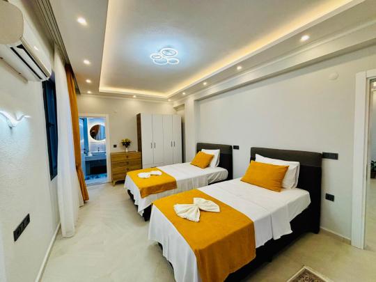 2.Yatak odası: Tek kişilik iki yatak, ebeveyn banyosu, klima ve elbise dolabı bulunmaktadır.