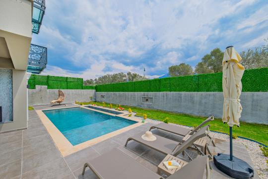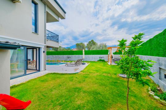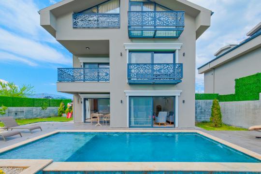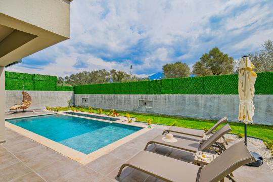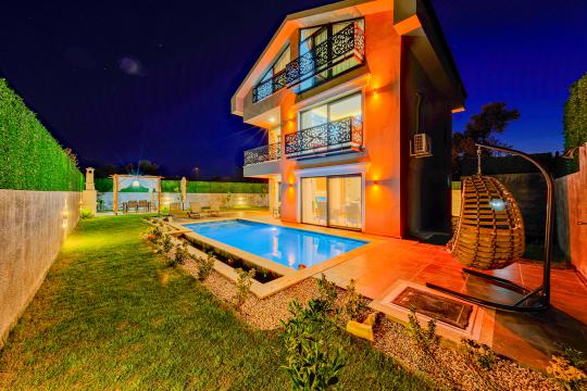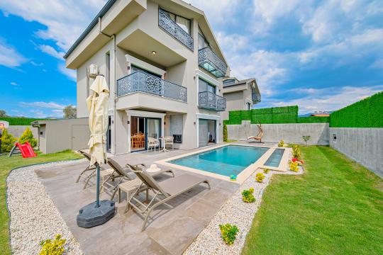 Not: Doğa ile iç içe konuma sahip olan tüm villalarımızda düzenli olarak ilaçlama yapılır. Buna rağmen çevrede haşere vb. bulunma ihtimali vardır. Havuzu korunaklı villalarımızda kesinlikle %100 görünmeme garantisi vermemekteyiz. Bu villalarımızda her zaman % 5 sakınma payı mevcuttur. Sitemizde bulunan villa fotoğraflarının, görüntüyü ekrana sığdırmak için ’Geniş Açılı Lens’ ile çekilmektedir. Bu sebeple resimlerdeki objeler, gerçek boyutlarından daha büyük veya küçük görünebilmekte.