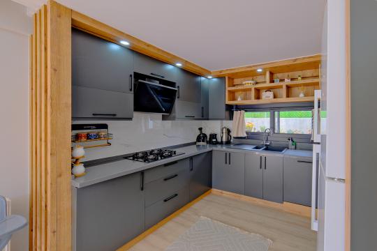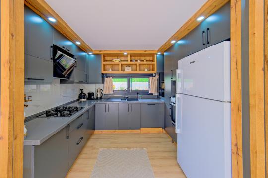Mutfak: Açık planlı mutfak, 8 kişi ve daha fazla kişiye yetecek kadar mutfak malzemeleri, bulaşık makinesi, çamaşır makinesi, fırın, ocak, buzdolabı, mikrodalga fırın, çay makinesi, kapsül kahve makinesi, dodurma makinesi, airfryer, türk kahvesi makinesi, çaydanlık ve kettle bulunmaktadır.