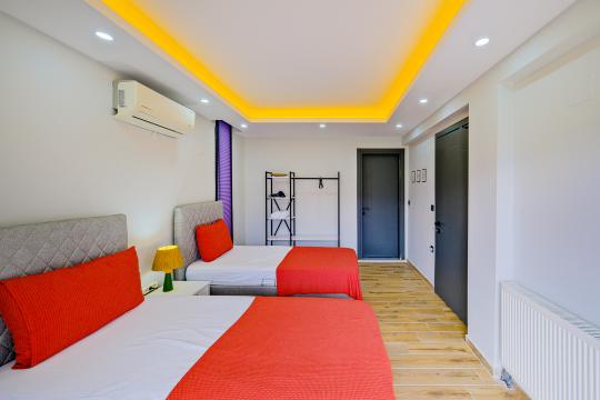 4.Yatak odası: Tek kişilik iki tane yatak, komodin, klima, elbise dolabı bulunmaktadır.