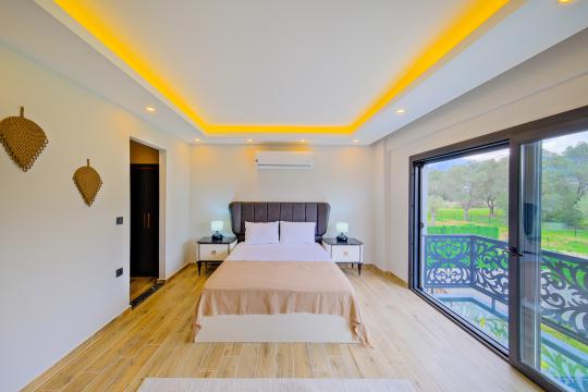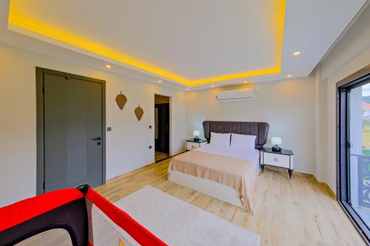 2.Yatak odası: Çift kişilik yatak, klima, ebeveyn banyo, komodin, elbise dolabı ve balkon bulunmaktadır.