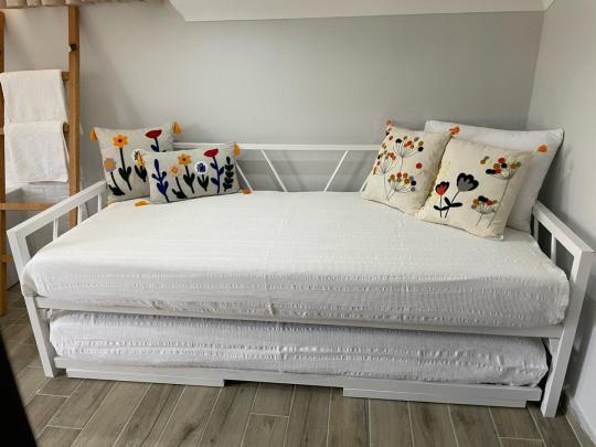 3.Yatak odası: Tek kişilik iki tane yatak, komodin, ebeveyn banyo, klima, elbise dolabı bulunmaktadır.