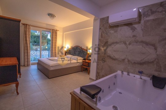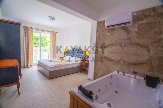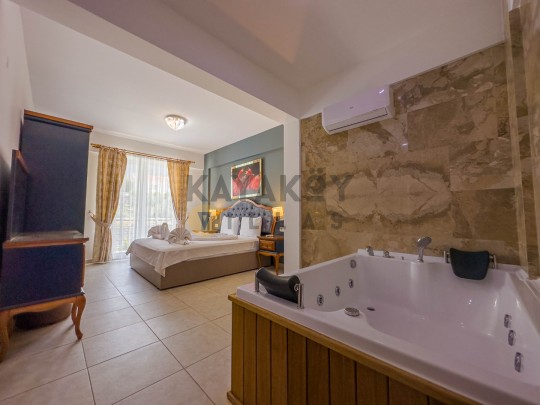 Jakuzi: Bir yatak odasında jakuzili banyo ile ekstra rahatlık.