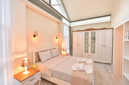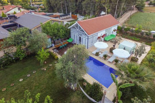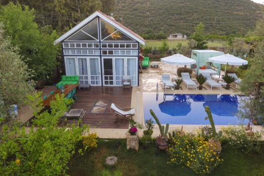 Kiralık Villa , doğası ve tarihi güzellikleri bir arada bulunduran meşhur Muğla Fethiye Kayaköy'de bulunmaktadır. Geniş yem yeşil bahçe alanı içerisinde keyifli vakit geçirebileceğiniz bahçe mobilyaları, havuz başında köşkü ile huzurlu bir tatil fırsatı sunmaktadır. Amerikan mimari yapısı ve asma katı ile dikkat çeken villamız yatak odalı 5 kişi konaklama kapasiteli giriş kat amerikan plan salon mutfak, alt katta süit aile yatak odası ve üst asma katta ise 3 tek kişilik yatak yer almaktadır. Modern ve şık dekore edilmiş olan Villa , korunaklı yüzme havuzu ile muhafazakar aileler ve balayı çiftleri için ideal kiralık villa seçeneğidir. Doğa içerisinde sessiz sakin konumu ile unutulmaz bir villa tatili sizleri bekliyor.
