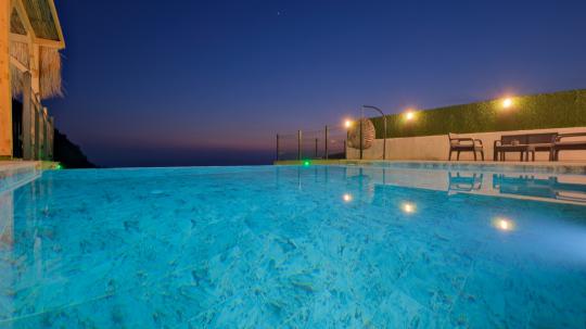 Sakin ve huzurlu bir tatil geçirmek isteyen Muhafazakar Konuklarımız, Balayı Çiftlerimiz için özel olarak tasarlanmış olup, konforunuz için her ayrıntı düşünülerek dizayn edilmiştir.Sonsuz havuzlu deniz ve doğa manzaralı villa