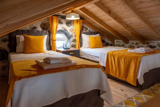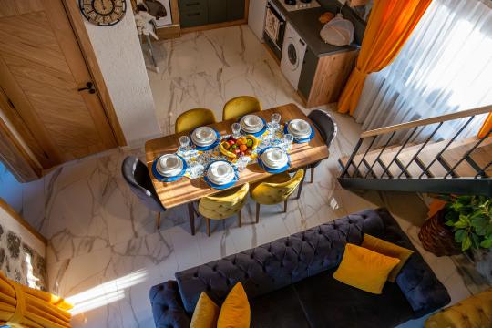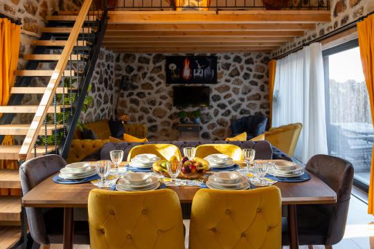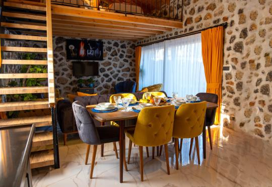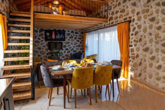 Market, restauranlara rahatlıkla ulaşım sağlayabileceğiniz, güne kuş sesleri ile uyanacağınız konum avantajıyla misafirlerimizi bekleyen villamızın bir yatak odası asma kat olarak dizayn edilmiştir.