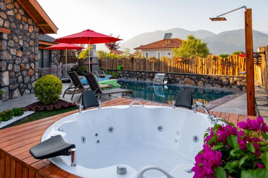 Ünlü tatil beldesi Fethiye'nin Yeşil Üzümlü bölgesinde bulunan Villa İkra, 2 yatak odası ile 4 kişilik konaklama kapasitesi sunmaktadır. Geniş ve korunaklı havuzunun yanında kullanışlı bahçe alanına sahip olan villamız, balayı çiftleri ve çekirdek ailelerin popüler tercihleri arasında yer almaktadır.