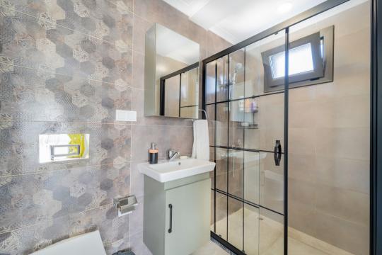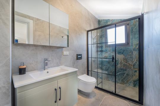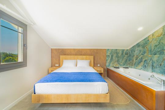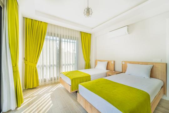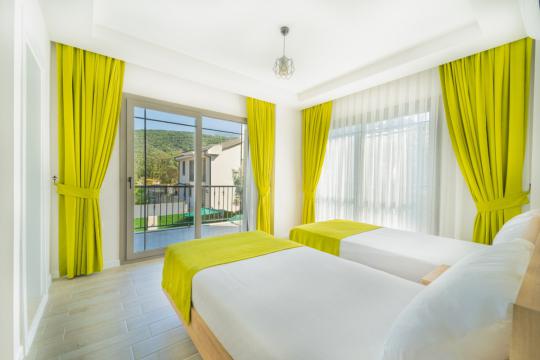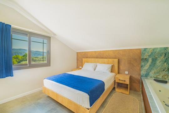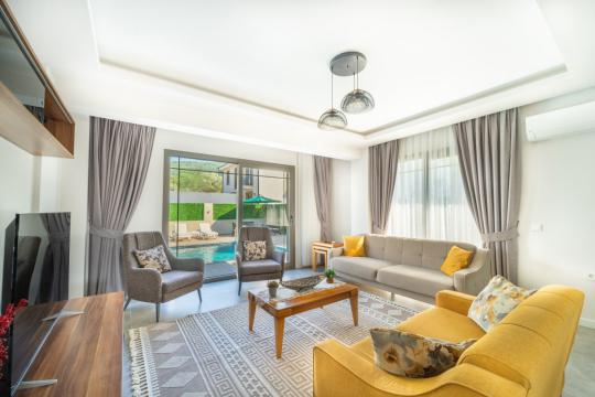 Doğa içinde huzurlu konumu sayesinde tercihlerin başında gelen villa, oldukça ferah ve geniş bahçe alanında kapasiteye uygun şezlong takımı, oturma grubu, salıncak ve barbekü alanına sahiptir. Havuz terasına açılan zevkle döşenmiş konforlu oturma odası ve tam donanımlı mutfağı, birinci yatak odasında çift kişilik yatak, jakuzi ve banyo; ikinci yatak odasında da iki tek kişilik yatak ve banyo; üçüncü yatak odasında çift kişilik yatak ve banyo bulunmaktadır.