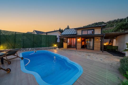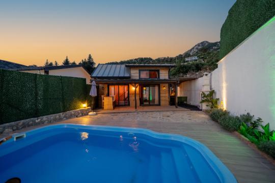 Villa Kanyon Bungalov, Fethiye'nin Kirme bölgesinde bulunan tek yatak odalı 2 kişi kapasiteli havuzu korunaklı balayı villasıdır. Villamızın yapısı itibariyle ahşabın dokusunu en ince ayrıntısına kadar hissedeceksiniz. Villamızın havuz bölümü dışarıdan görünmemektedir bu yönüyle muhafazakar balayı çiftlerimiz ve çekirdek ailelerimiz için idealdir. Gözlerden uzakta kimsenin sizi rahatsız edemeyeceği huzurlu ve mutlu bir tatil imkanı sunan villamızda misafirlerimiz için herşey eksiksiz yer almaktadır. Villamızda sevdiklerinizle size ait özel havuzunda keyifli vakit geçirebilir ve bahçesinde mangal yakabilirsiniz.