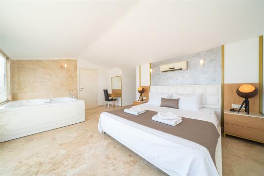 5.Yatak Odası: 1 adet çift kişilik king size yatak,LCD TV, özel jakuzi,komodin, makyaj masası, gardrop ve banyo-WC yer almaktadır.