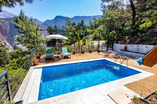 Villa Kelebek, Fethiye Faralya bölgesinde bulunan dünyaca ünlü Kelebekler Vadisi'nin hemen üstünde konumlanmaktadır. Şehirden uzak doğayla iç içe ahşap üçgen tatil evi olarak tasarlanmış, doğanın koynunda, şehir hayatının karmaşasından tamamen uzakta, muhteşem deniz ve Kelebekler Vadisi manzarası eşliğinde, sadece size özel havuzlu olan 1 yatak odası ile 2 kişi konaklama kapasitesine sahiptir. Muhteşem deniz manzarası ile öne çıkan balayı çiftleri ve çekirdek ailelerin tercih ettiği villamızda huzurlu bir tatil geçirmeniz için her şey düşünülmüştir.