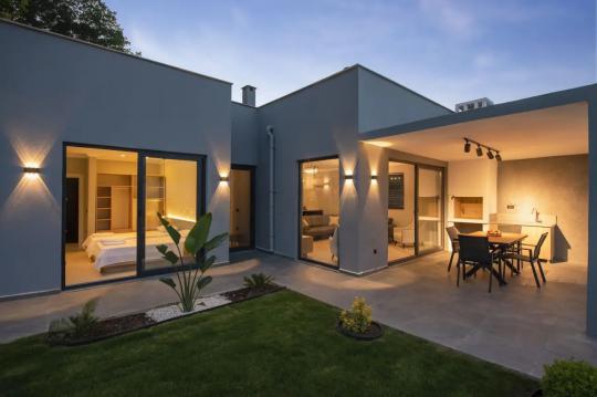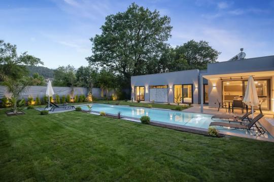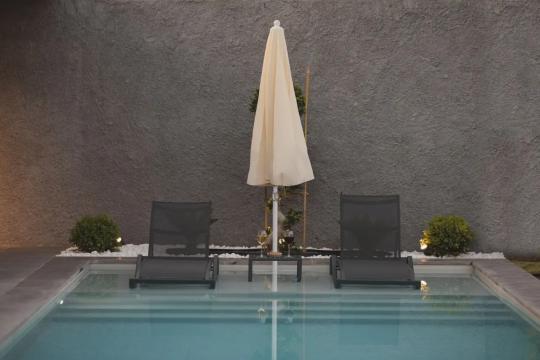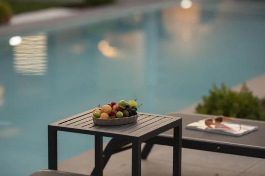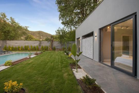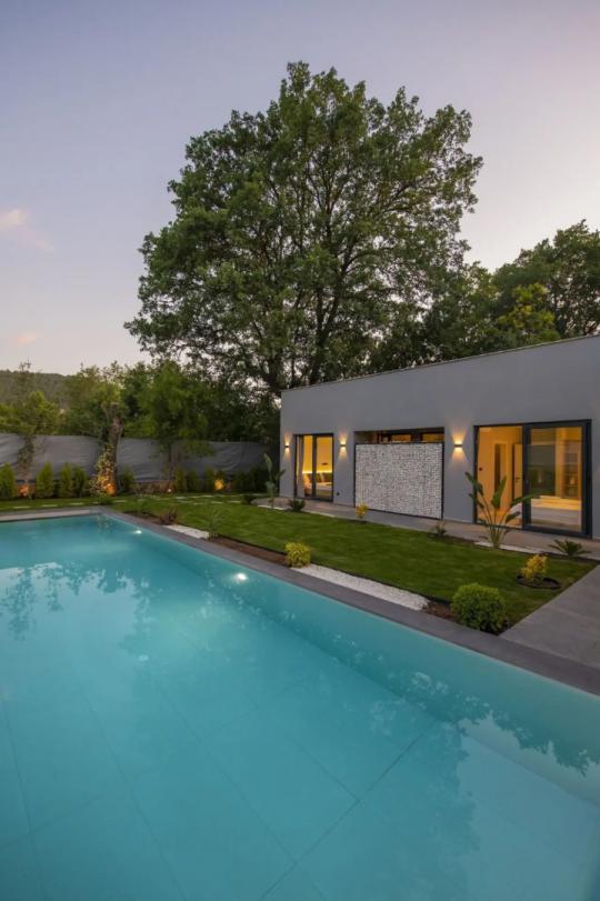 Özel Bahçe : Villa Kiraz özel bahçesinde, mini bahçe mutfağı, 4 kişilik masa - sandalye takımı, güneşlenme terası, havuz, barbekü, 4 adet şezlong ve güneşlenme şemsiyesi bulunmaktadır.