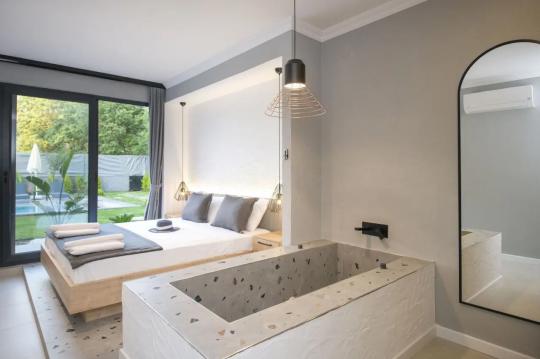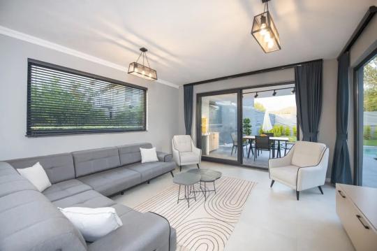 Ekstralar : Villa bahçesinde korunaklı özel yüzme havuzu bulunmaktadır. Master suit odasında jakuzi bulunmaktadır. Salon ve tüm odalarda klima mevcuttur, ayrıca ücretsiz internet bulunmaktadır.Hasar Depozitosu : Hasar, zayi, kırık, dökük, vb. için girişte 3.000 TL depozito alınmaktadır. Herhangi bir problem olmadığında villa çıkışında depozito iade edilmektedir.