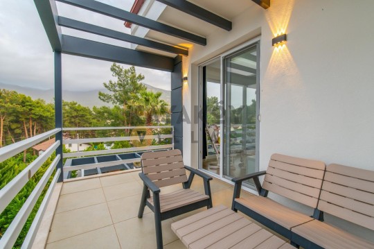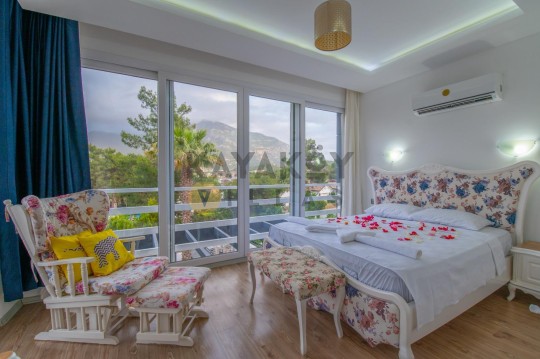 Fethiye’nin Ölüdeniz – Ovacık / Hisarönü bölgesinde konumlanan Villa Konkort, geniş ve ferah tasarımıyla 12 kişiye kadar konaklama imkânı sunan lüks bir tatil villasıdır. Toplam 6 yatak odası ve 5 banyo/WC düzeniyle büyük aileler veya arkadaş grupları için ideal bir konaklama fırsatı sağlar. Villa, dağ ve çam ormanlarının içinde bulunarak Babadağ’ın muhteşem manzarasını sunar; Hisarönü merkezine sadece kısa bir yürüyüş mesafesindedir.