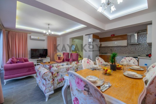 Modern döşenmiş iç mekânında salon, klima, LCD TV ve kablosuz internet gibi konfor unsurları yer alır. Tam donanımlı Amerikan mutfak ile evinizdeki rahatlığı yaşarken, gündelik yemeklerinizi birlikte hazırlayabilirsiniz. Dış mekânda özel korunaklı yüzme havuzu, güneşlenme terası, barbekü/mangal alanı ve geniş bahçe oturma grubu ile tüm konuklara keyifli açık hava imkânları sunar.
