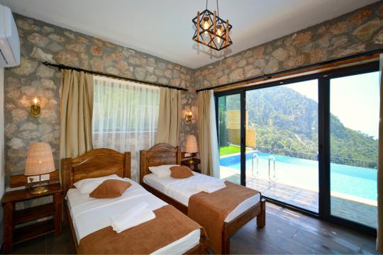 Villa Kum, Ölüdeniz Faralya köyü Kirme mahallesinde konumlandırılmış olup 2 yatak odası ile 4 kişi konaklama kapasitesine sahiptir. Seyrine ve keyfine doyulmayacak bir manzara eşliğinde çok özel bir alanda konumlanmış bu villamız, sınırsız doğa ve deniz manzarasının enfes gün batımı ile birleşmesiyle unutulmaz anlar yaşayacağınız özel bir villadır.