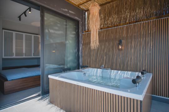 Bahçe : Şezlonglar, güneş şemsiyesi, barbekü, sandalye ve masa bulunmaktadır.