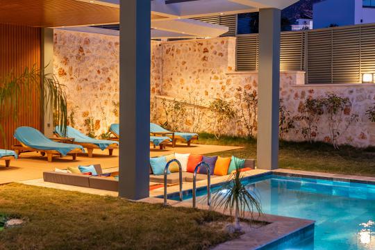 Villa Ladin 3 Kalkan, Kalamar da konumludur. 4 yatak odası bulunan villamız 8 yetişkin konaklama kapasitelidir. Sevdiklerinizle masmavi deniz manzarası karşısında tatilinizin keyfini çıkarabilirsiniz. Her odadan denizin sonsuzluğunu izlemeniz mümkündür. Şık ve konforlu dizayna sahip villamız geniş aile ve arkadaş grupları için oldukça idealdir.