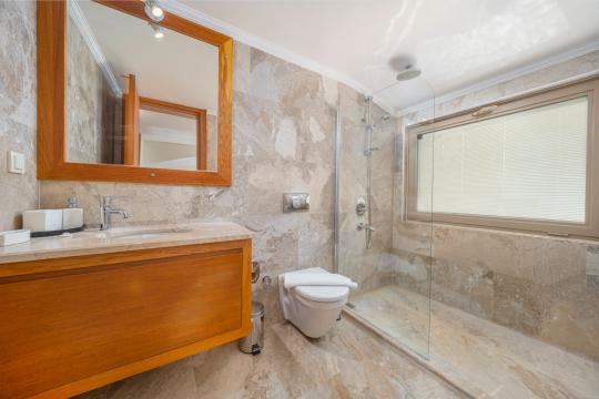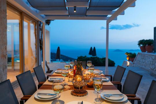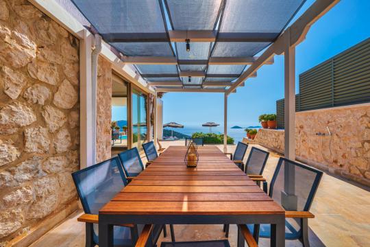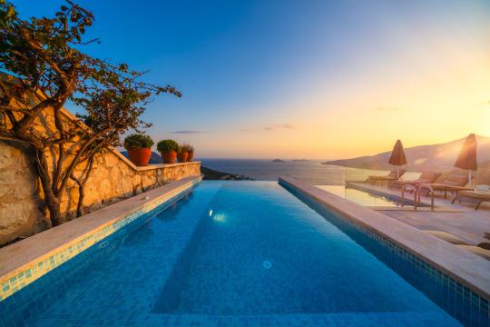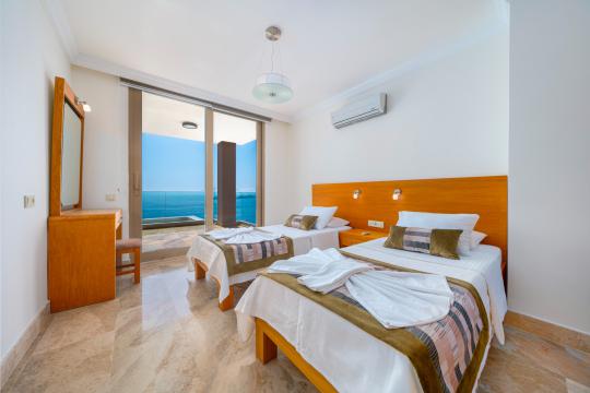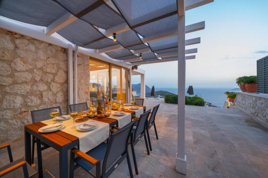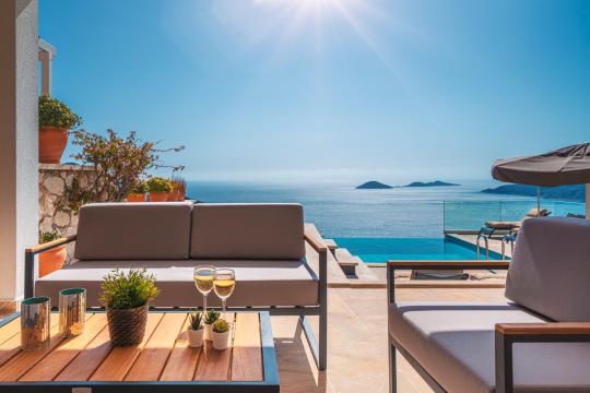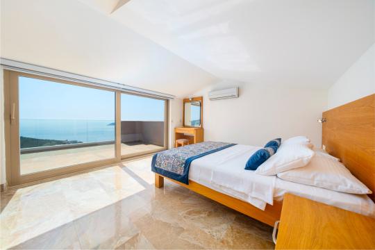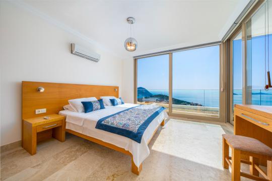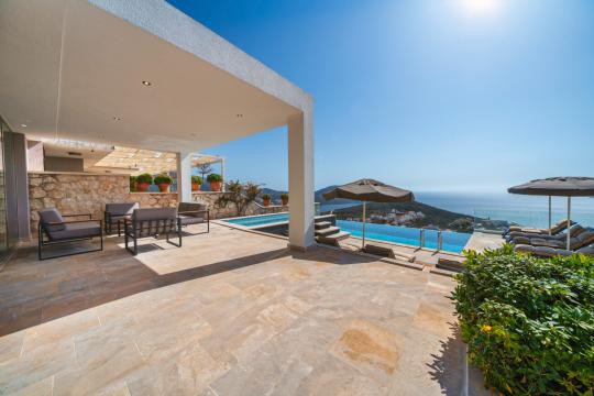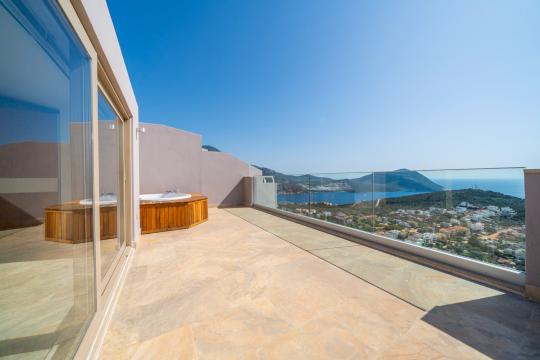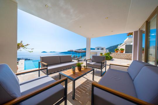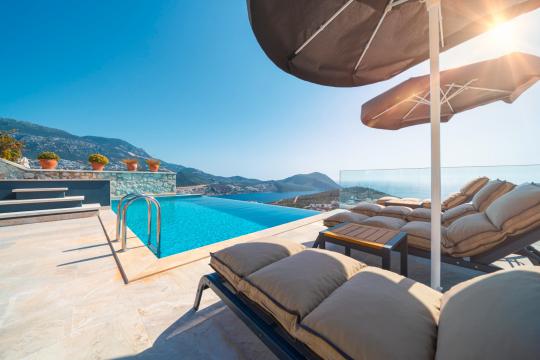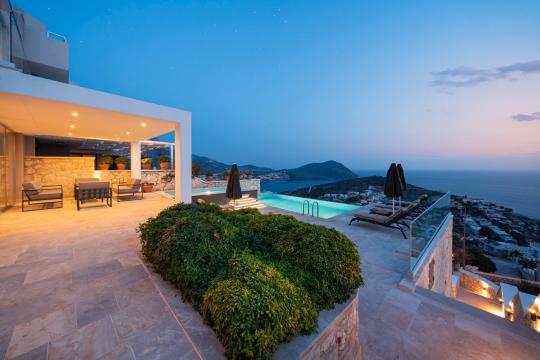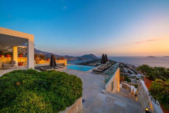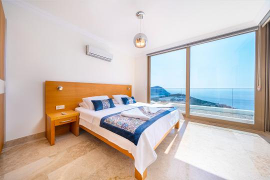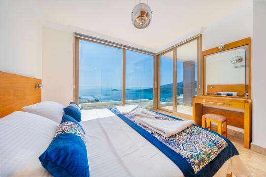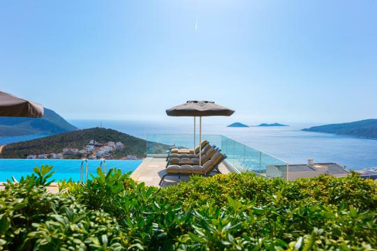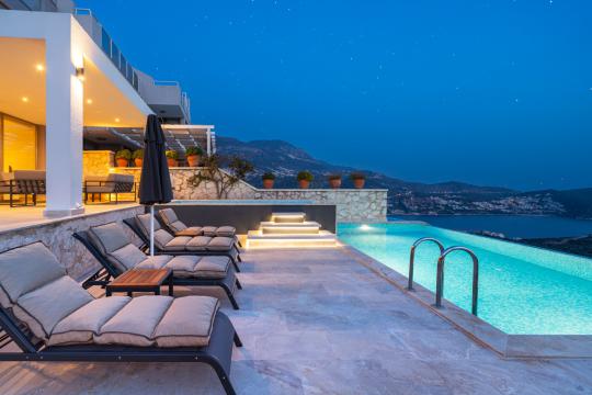 Kalkan, Kalamar da konumludur. 4 yatak odası bulunan villamızın 4. yatak odası havuz bölümünün alt kısmında olup binadan bağımsız şekilde tasarlanmıştır. 8 yetişkin konaklama kapasitelidir. Eşsiz deniz manzarasına sahip sonsuzluk havuzu bulunmaktadır. Sevdiklerinizle masmavi deniz manzarası karşısında tatilinizin keyfini çıkarabilirsiniz. Terasında açık hava jakuzisi bulunmaktadır. Her odadan denizin sonsuzluğunu izlemeniz mümkündür. Şık ve konforlu dizayna sahip villamız geniş aile ve arkadaş grupları için oldukça idealdir.