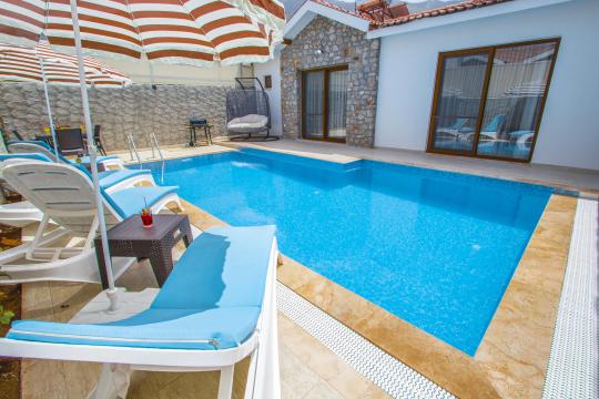 Villa Lapis Suit 1, Fethiye’ye bağlı Ölüdeniz Ovacık mevkiinde yer alan muhafazakar, korunaklı bir villadır. Havuz terası ve bahçesi ile şehrin trafik ve gürültüsünden uzak tatiliniz için ideal bir ortam sağlamaktadır. Toplamda 2 adet yatak odası bulunan villamızda 4 kişiye kadar konaklama imkanı sunulmaktadır. Villamız tek katlı ve geniş havuz terasının olması sebebi ile çocuklu aileler için ideal bir seçenektir. Villamızın konumu gereği havuzu ve havuz terası korunaklı olup çevreden kesinlikle gözükmemektedir. Muhafazakar ailelere uygun bir villa seçeneği olarak hizmet vermektedir.