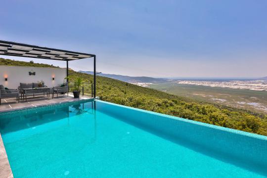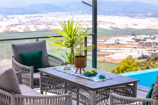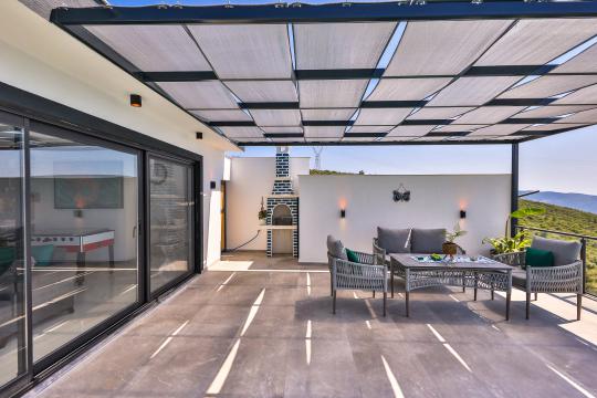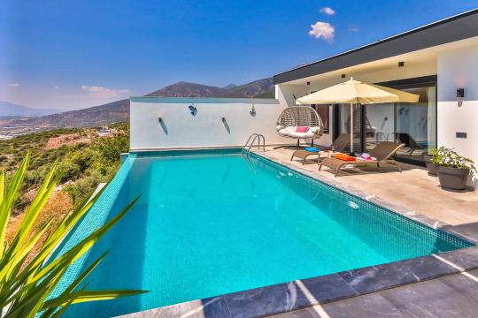 Villanın güneşlenme terası ve havuzunun dış taraftan görünmemesi için gerekli önlemler alınmıştır fakat villanın diğer bölümlerinin görünürlüğü kesin olarak garanti edilememektedir.