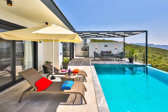 Villa Lavander Duo;Kalkan Üzümlü bölgesinde yer alan 2 kişi kapasiteli 1 yatak odalı villa seçeneklerimizden biridir. Balayı çiftlerimize özel olarak tasarlanan villamızda yatak odasında jakuzi bulunmaktadır. Muhteşem günbatımı eşliğinde kahvenizi yudumlayabilir yılın yorgunluğunu çıkarabilirsiniz. Villamızda langırt, barbekü ve güneşlenme alanı bulunmaktadır.