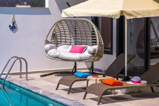 Bahçe alanı içerisinde şezlong, şemsiye, oturma grubu, yemek masası, barbekü, salıncak bulunmaktadır.