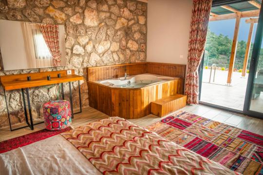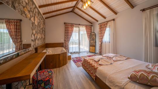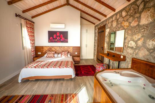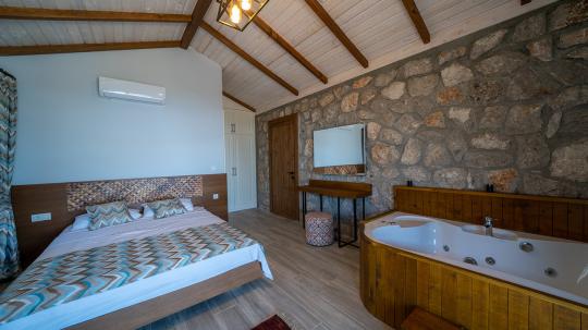 1. Yatak Odası : 1 adet çift kişilik yatak, makyaj masası, klima, elbise dolabı, komodin, Banyo&WC ve Jakuzi bulunmaktadır.