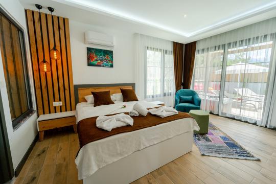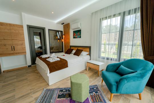 Fethiye merkeze 25 Km, Dalaman Havalimanı 67 Km, Ölüdeniz 34 Km, Saklıkent Kanyonu 18 Km, Ören Araxa 13 Km, Patara Plajı 53 km ve Kalkan merkeze 58 km mesafede olup En fazla 45 dakika yolculuk sürer.
