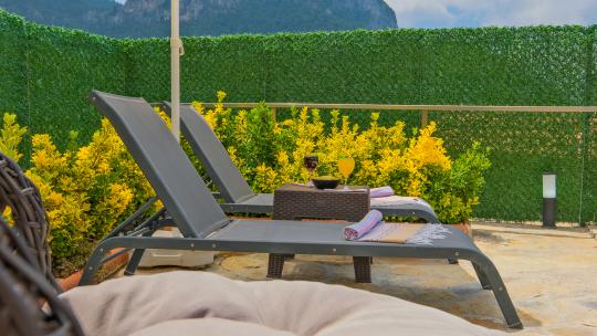 Bahçede köşk, salıncak ve şezlong bulunmaktadır. Bu alan güneşlenmek ve doğa manzarasını izlemek için idealdir. Huzurlu ve size özel bir tatil için Villa Targaryen'i öneriyoruz.
