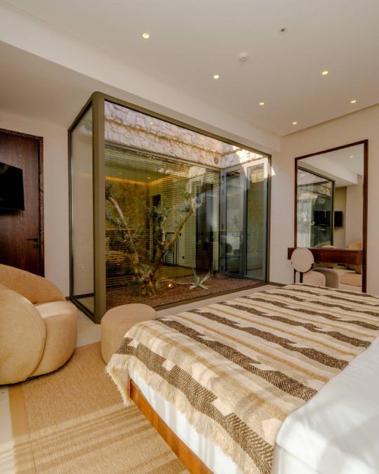 Birinci yatak odasında çift kişilik yatak ve ebeveyn banyosu;