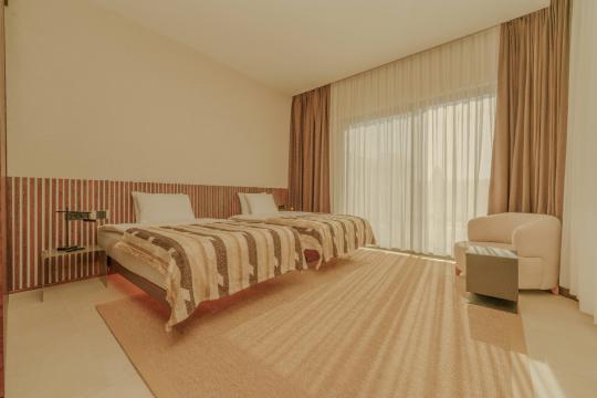 ikinci yatak odasında iki tek kişilik yatak ve banyo yer almaktadır.