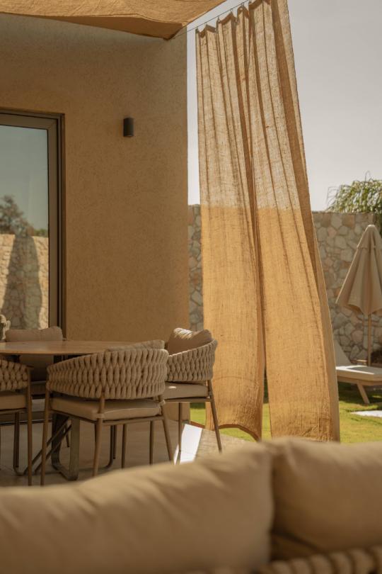 Korunaklı ve özel havuzlu bahçesiyle misafirlerine keyifli vakit geçirme olanağı tanıyan villa, tatilde formunu korumak isteyenler için yoga matları, denge silindirleri ve dumbbell setlerinden oluşan spor ekipmanlarıyla da donatılmıştır.