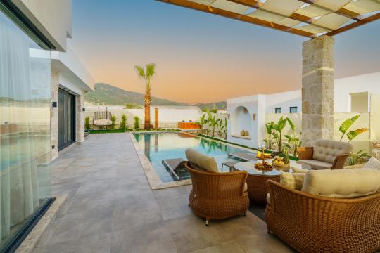 Yatak odasında bulunan jakuzisinin yanında, bahçede bulunan jakuzisi ile sizlere hayalinizdeki tatili yaşatacak bir villa..