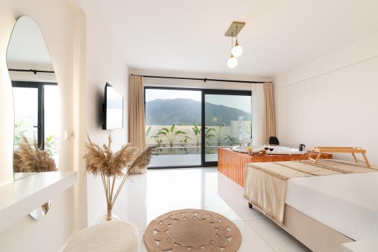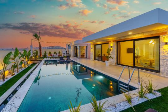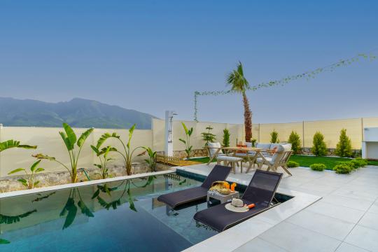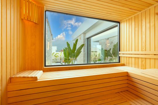 Yatak odasında bulunan jakuzisinin yanında saunası ile sizlere hayalinizdeki tatili yaşatacak bir villa..
