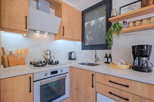 Mutfak : Modern Amerikan Mutfak (Zemin Katta), Buzdolabı, Bulaşık Makinesi, Çamaşır makinesi, Kahve Makinesi,Fırın, 4′lü Ocak (ankastre),Su ısıtıcısı, 2 kişilik yemek takımı, Tava, Tencere, Çatal bıçak vb.