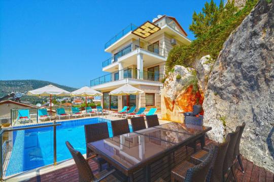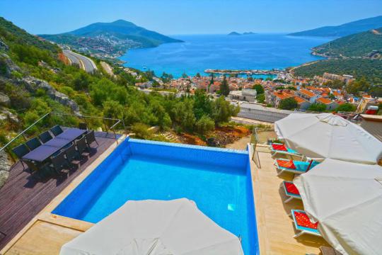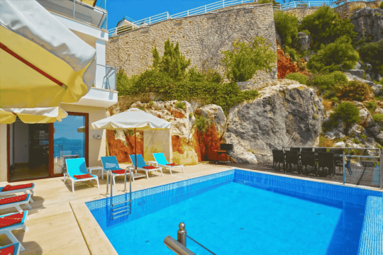 Kalkan Kızıltaş mevkiinde bulunan Villa Load 1, 5 yatak odasıyla 10 kişilik konaklama kapasitesi sunmaktadır. Deniz manzarasına hakim, genişliği ve şıklığı ile göz dolduran villa, geniş havuz alanıyla, kalabalık ailer ve arkadaş grupları için idealdir.