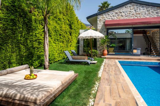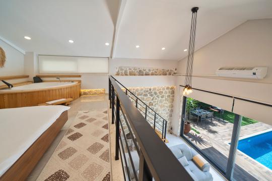 Konaklamak isteyen müşterilerimize Huzur ve lüksü bir arada sunan eşsiz bir tatil villası. Mimari tarzı standartların dışında olan ve sizlere farklı deneyimler sunacak bir villa. Siz değerli misafirlerimiz için en iyi ve farklı ürünleri bir arada kullandık.