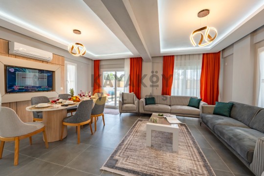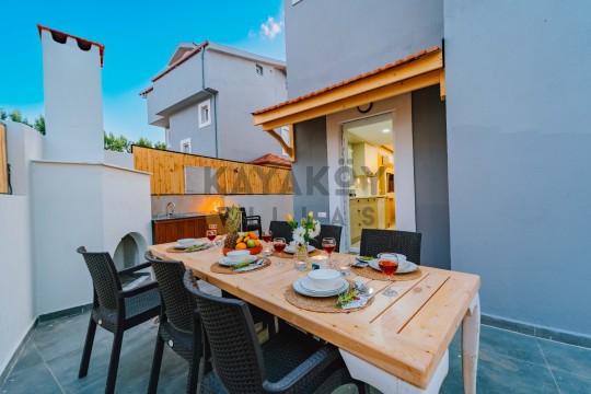 Modern yaşam alanı, geniş bahçe ve barbekü olanaklarıyla tatilinizi zenginleştirmek istiyorsanız