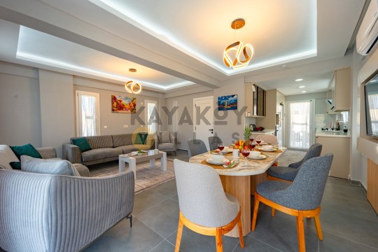 Modern Yaşam Alanı: Açık plan salon ve tam donanımlı mutfak.