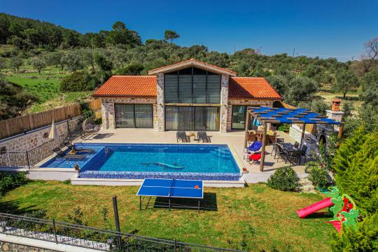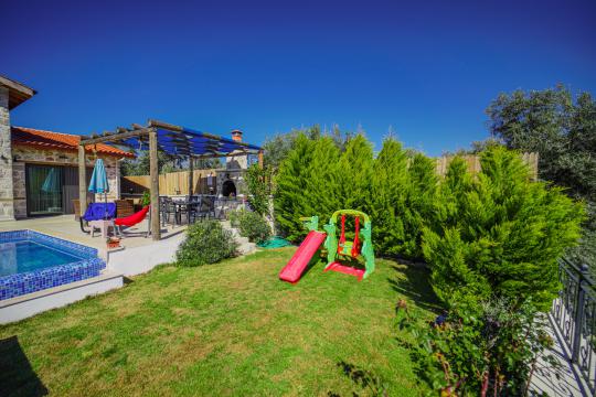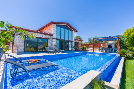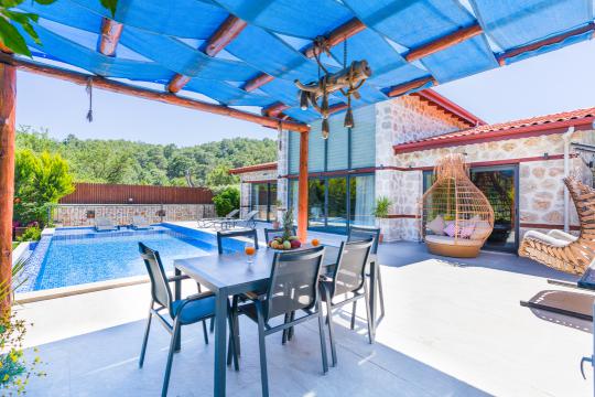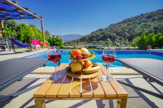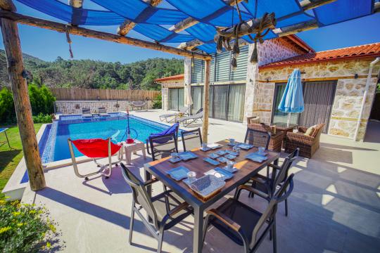 Havuz Terası: Terasında özel yüzme havuzu, şezlonglar, güneş şemsiyeleri, masa ve sandalyeler, mangal bulunmaktadır.