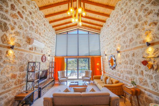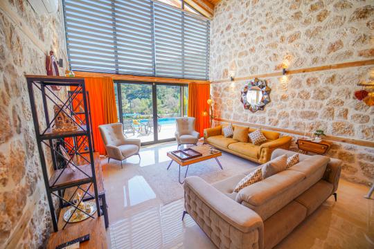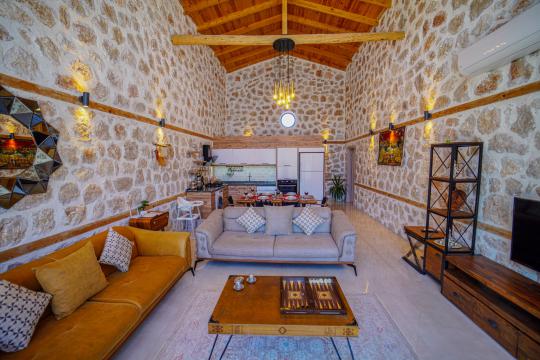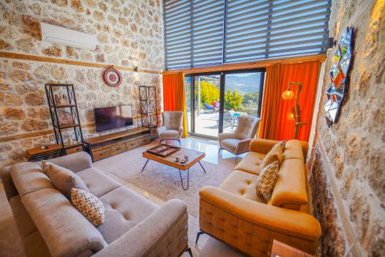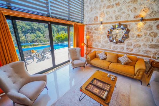 Şık dekore edilmiş salonda, oturma grubu, televizyon, uydu alıcı ve klima yer almaktadır. Ayrıca salondan havuz terasına çıkışta bulunmaktadır.