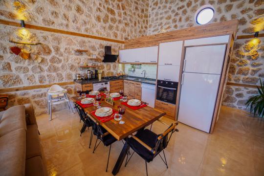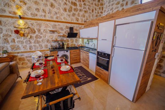 Modern mutfakta, bulaşık makinesi, çamaşır makinesi, mikrodalga fırın, 4’lü ocak, fırın, buzdolabı, ketle, ekmek kızartma makinesi (tost makinesi), tencere ve tava takımı, 4 kişilik yemek takımı, kaşık ve çatal seti ve bardaklar bulunmaktadır.