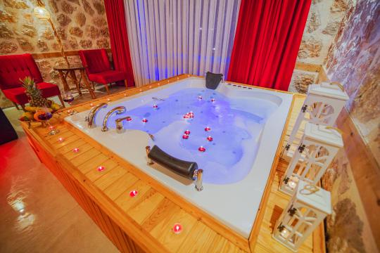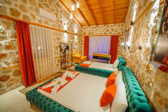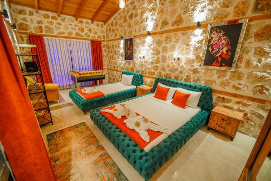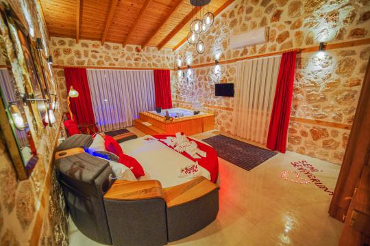 1.Yatak Odası (Aile):1 adet çift kişilik yatak, klima, elbise dolabı, komodin, makyaj masası, jakuzi, banyo, tuvalet bulunmaktadır.